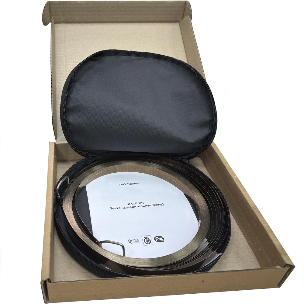 Лента изготовлена из нержавеющей стали, обладает высокой гибкостью и прочностью. Даже при самых сильных перегибах данная образцовая измерительная лента не ломается. Для нанесения шкалы используется метод лазерной гравировки, что обеспечивает высокое качество шкалы и её долговечность.