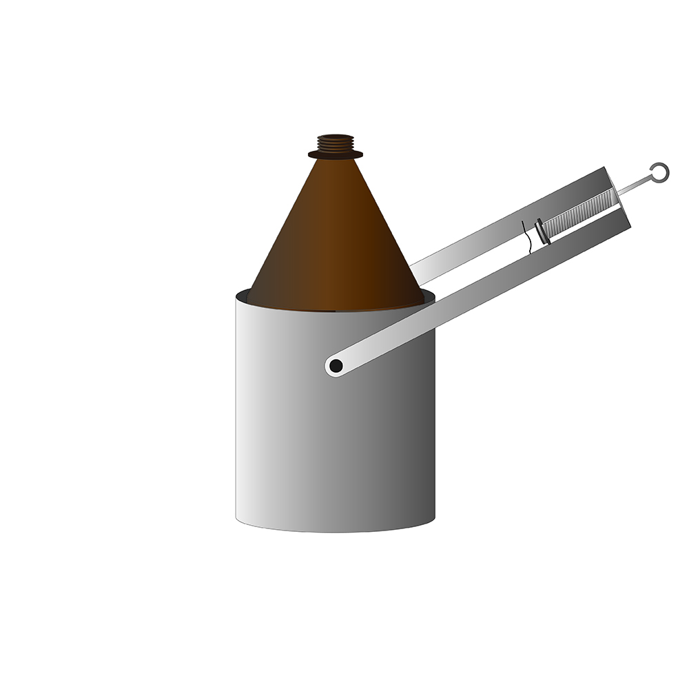 Трос крепится к штоку который закрывает и открывает бутылку. Удобно доставать бутылку из пробоотборника благодаря поворотному механизму.