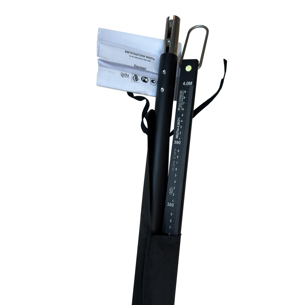 МШТм - метроштоки, разработанные для измерения уровня нефтепродуктов и иных неагрессивных жидкостей в ёмкостях. Данные метроштоки имеют несколько модификаций, различающихся длиной, количеством звеньев, материалом изготовления, формой профиля, наличием анодированного покрытия. При измерении уровня нефтепродуктов используется бензочувствительная паста (например бензочувствительная паста Gasoila, артикул DGGP25), изменяющая свой цвет в местах соприкосновения с нефтепродуктом, позволяя визуально оценить уровень заполненности ёмкости. Также часто метроштоки МШТм используются чтобы определить уровень подтоварных вод, в этом случае на нижнюю часть шкалы метроштока наносится тонким слоем специальная водочувствительная паста (например водочувствительная паста Gasoila, артикул QDFP25), изменяющая свой цвет при соприкосновении с водой. Самый короткий метрошток - МШТм-1,0 обладает шкалой 1000 мм (габаритные размеры 1180 мм), данный метрошток цельный, то есть состоит из одного звена. Метроштоки с более длинными шкалами состоят из двух, трёх или четырёх частей. Наиболее длинной шкалой (6000 мм) обладает метрошток МШТм-6,0, который может состоять из трёх или четырёх частей. Метроштоки могут изготавливаться с двумя вариантами профилей сечения - таврового сечения (в наименовании модели используется буква Т) и полукруглого сечения (в наименовании модели - буква К). Метроштоки МШТм могут изготавливаться из алюминия (для нефтепродуктов) нержавеющей стали (для пищевых продуктов). Алюминиевые метроштоки также могут иметь покрытие чёрного цвета, получаемое методом анодирования, в этом случае в название модели метроштока добавляется буква Ч. Метроштоки из специальной пищевой нержавещей стали содержат в наименовании модели указание марки стали - AISI 304. Таким образом, наименование модели МШТм содержит указание длины шкалы в метрах, тип профиля сечения (К - полукруглый, Т - тавровый), количество звеньев, указание на наличие чернения (буква Ч) либо марку стали (AISI 304). Например, метрошток МШТм-4,4К3Ч - метрошток с длиной шкалы 4,4 метра, с полукруглым профилем сечения, состоящий из трёх звеньев, чернёный.